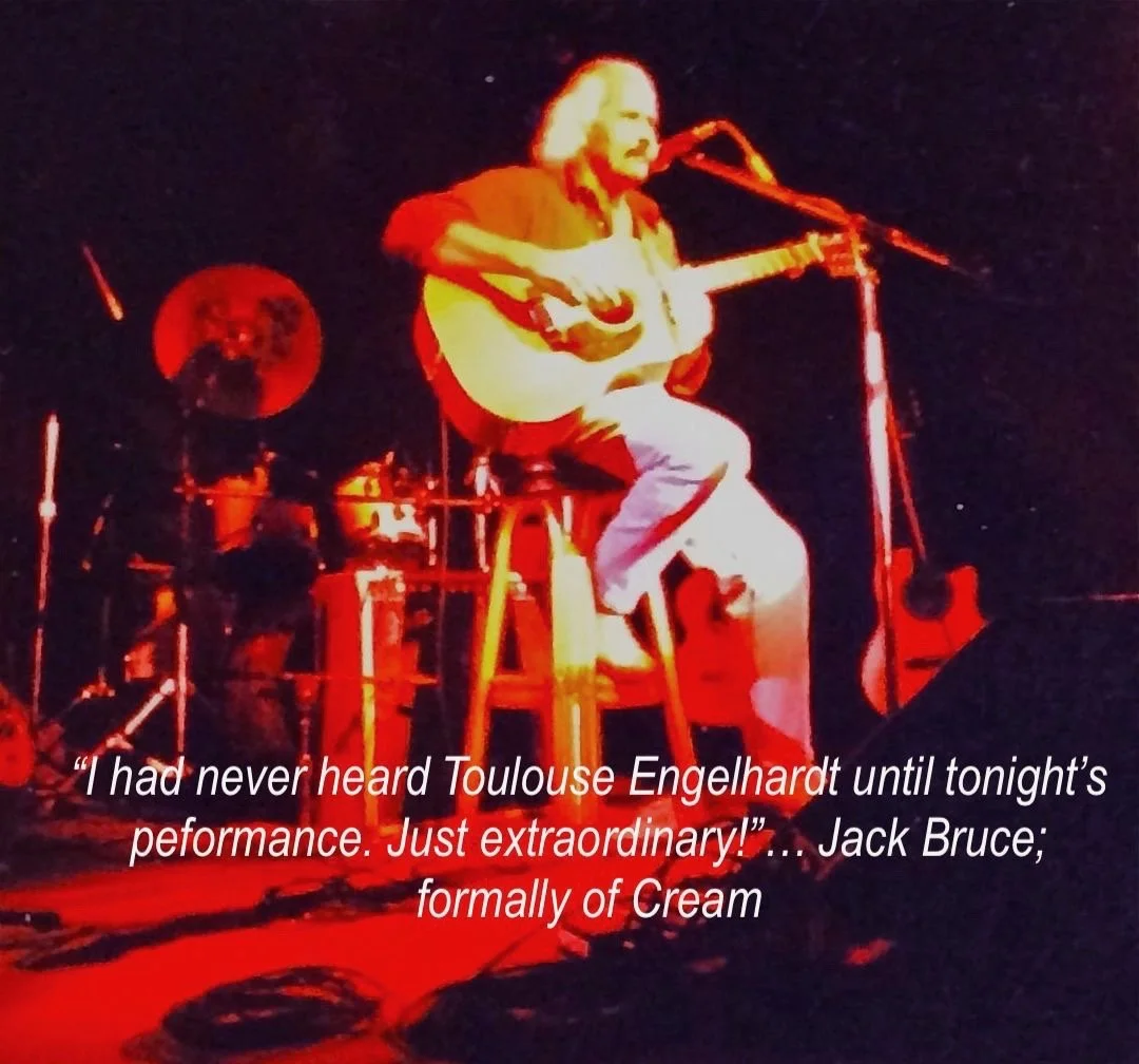“Toulouse Engelhardt is a master of fingerstyle guitar and he was mentored by none other than John Fahey, who recognized Engelhardt’s amazing combination of speed, soul, and dexterity. Engelhardt’s music is an exciting, virtuosic amalgam of musical styles, ranging from blues and folk to classical and surf.”…Acoustic Guitar Magazine