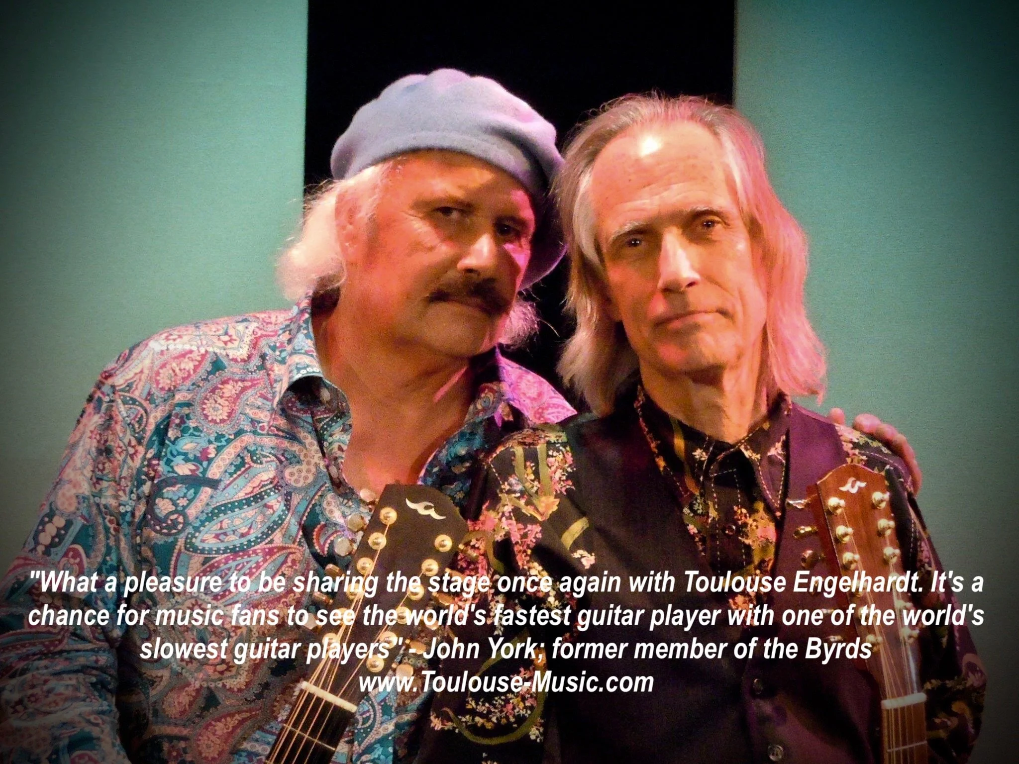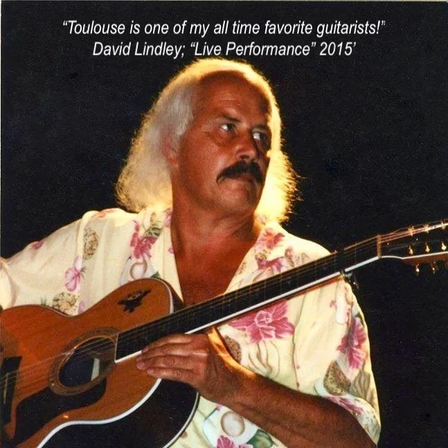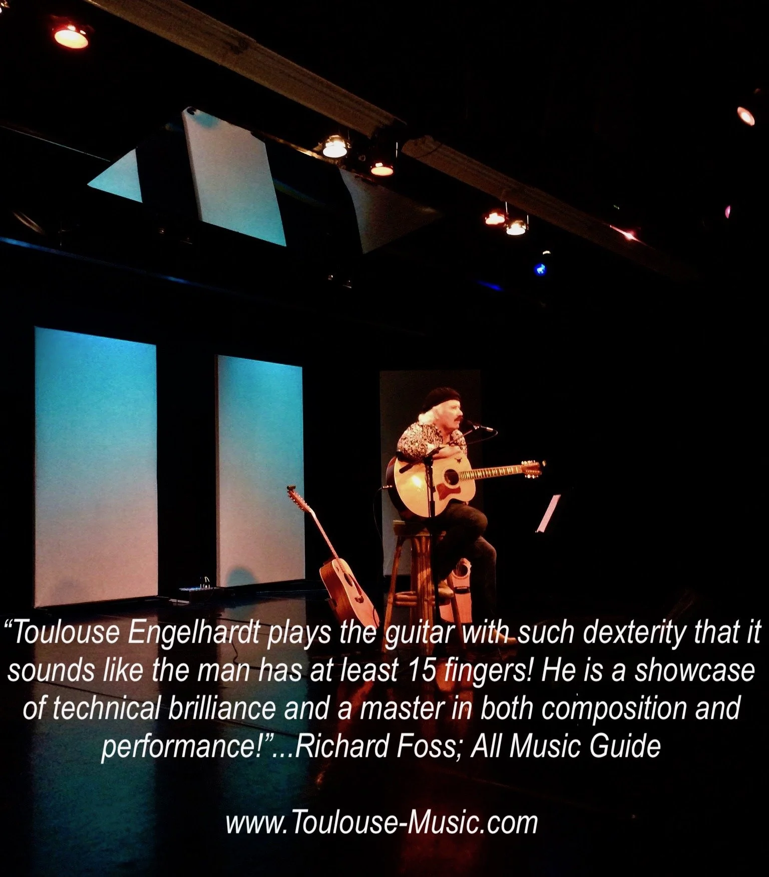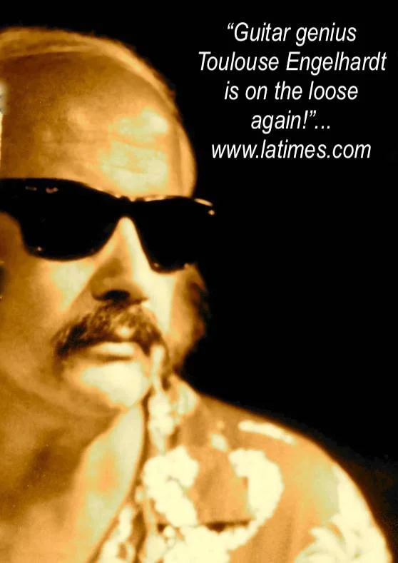 TOULOUSE ENGELHARDT, the celebrated guitar virtuoso, composer and humorist was born in Milwaukee, Wisconsin, but has lived the majority of his years in Southern California beach culture. Toulouse Engelhardt, has earned accolades from serious critics of the guitar and the listening public alike for his lightning fast guitar stylings and colorful,cinematic melodies. After a musical career that spans more than 40 years, he has reached a level of cult status among the guitar fandom world. He was the last original member of the “Takoma Seven”, the highly celebrated innovators of finger-style steel string guitar that recorded for Takoma Records from (1959-1976). His label mates include John Fahey, Leo Kottke, Robbie Basho, Peter Lang, Rick Ruskin and Michael Gulezian. It was this elite group of seven innovative, finger style guitar virtuosos that brought about the current renaissance in acoustic guitar that we are witnessing today.
